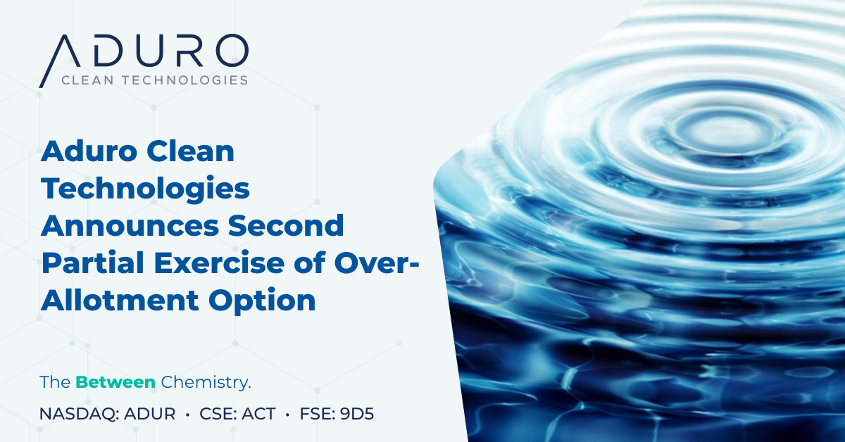 Aduro Clean Technologies Announces Second Partial Exercise of Over-Allotment Option