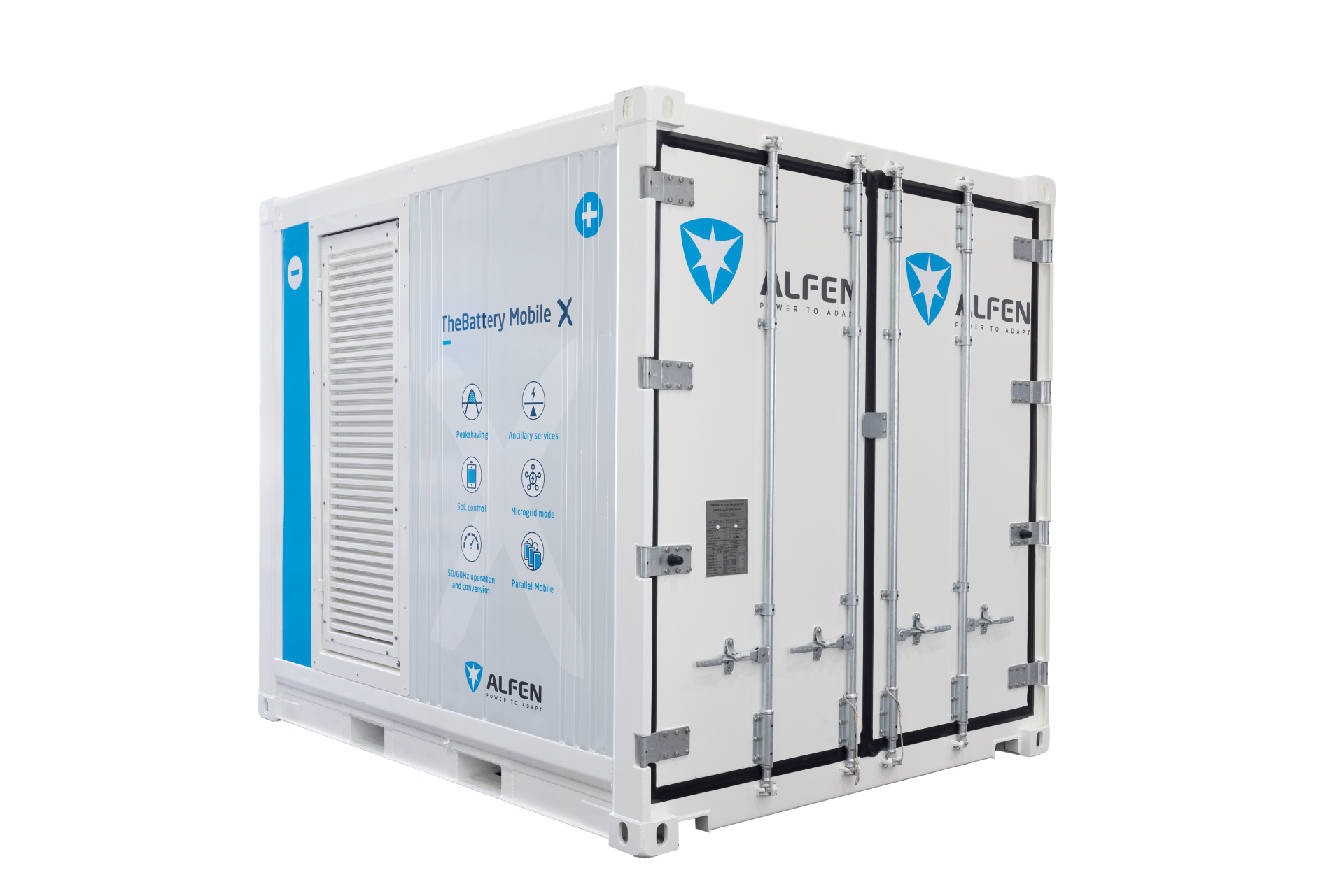 Drawing on Alfen’s five years of experience and product innovation in mobile battery storage, TheBattery MobileX is market-leading in supplying up to 720 kWh in energy capacity and stands out as a reliable and flexible solution to power projects in any location while reducing and/or eliminating CO₂ footprints. It offers a unique level of application versatility such as the option to operate at 50 or 60Hz, making it highly flexible for offshore and maritime sectors. It also ensures a stable grid connection for greater supply consistency. Its easy plug-and-play format enables a wide range of use cases. For example, units can be used standalone, as part of a local microgrid at a business location, grouped to increase power output or as additional power for peak loads (peakshaving).