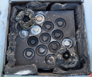 The thermal runaway propagation tests, highlighted here at NPE, are performed using a cluster of 15 commercial 18650 and 11 21700 lithium-ion battery cells enclosed in a steel chamber, with and without injection-molded STAMAX 30YH570 resin blocks serving as a thermal barrier.