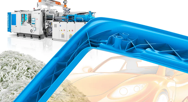 Live at K 2025, visitors can experience the CFP technology on a GX 650-4300 (clamping force 6500 kN) with an LRXplus 350 linear robot. The production of a complex, functionally integrated tailgate component with realistic 3D geometry and high functional integration will be demonstrated – without reworking and ready for assembly straight from the machine. This opens up new possibilities for the manufacture of structural and support components as well as reinforcement elements.
